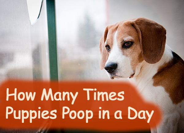 How many times a day should a puppy poop? Puppies normally poop 5 times a day. This pattern is normal for puppies of 8 weeks, 10 weeks, 12 weeks, 5 months, 6 months, and any age until they mature into adulthood. This can vary from puppy to puppy and largely depend on their diet, age, and activity level. A tired or hungry puppy will have a lot more bowel movements. For the most part, a young puppy will poop at least once every day, usually more frequently than that, as puppies generally poop just about every time they defecate.